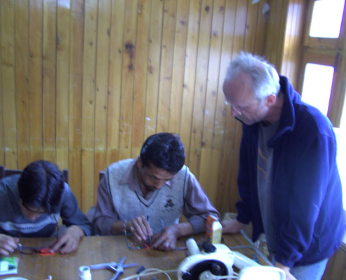 Für die „Baltistan health & Education Foundation“ wurde eine Optikwerkstatt eingerichtet und ein paar Einheimische die ersten Grundlagen zur eigenständigen Brillenfertigung gezeigt.